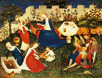 A medieval hortus conclusus (enclosed garden)