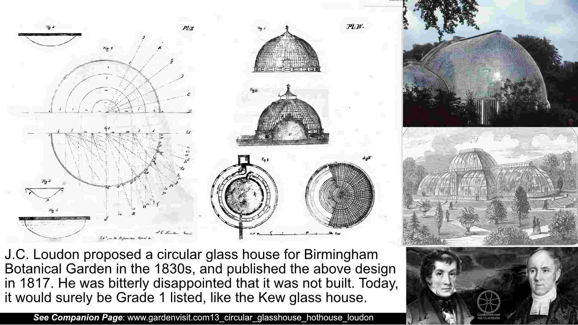 'Next morning the family went to see the Botanical Garden which John had designed ten years earlier. The greater part of his plan had been implemented but he was disappointed by the hothouses. A cheaper design had been substituted for his circular hot-house. The result was, in his opinion: ‘the worst in point of taste that we know of.’ He thought it not unlike the turrets sometimes built for pigeons on the roofs of offices. ‘To our eyes,' he wrote, 'the glasshouse is most offensive. This impression is by no means diminished when entering. Instead of being filled with large plants, such as bananas, palms, and tropical trees, it contains a stage covered by small plants in pots. Had it been modelled on our glass dome in Porchester Terrace, it would have outshone Mr Paxton’s Great Stove at Chatsworth. Pinching pennies is bad policy, especially when designing for the public.’ ‘’This is a quote from The Claudians: gardens, landscapes, reason and faith: John Claudius Loudon and Claudius Buchanan, Tom Turner (Kindle, 2024).