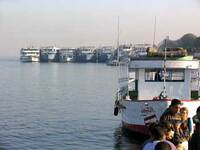 The profusion of Nile cruise boats at Luxor have destroyed the ancient tranquility of the waterside. It looks and smells like the port of Athens (Piraeus) on a bad day at the height of the summer tourist rush. Possible solutions are:
